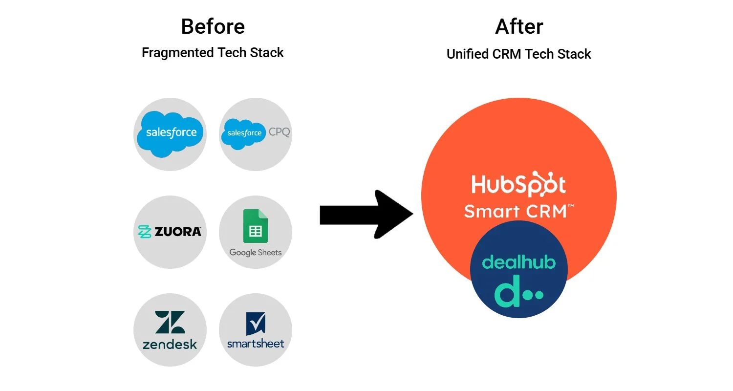 By Consolidating Salesforce, Zuora, Zendesk, and Excel into HubSpot & DealHub